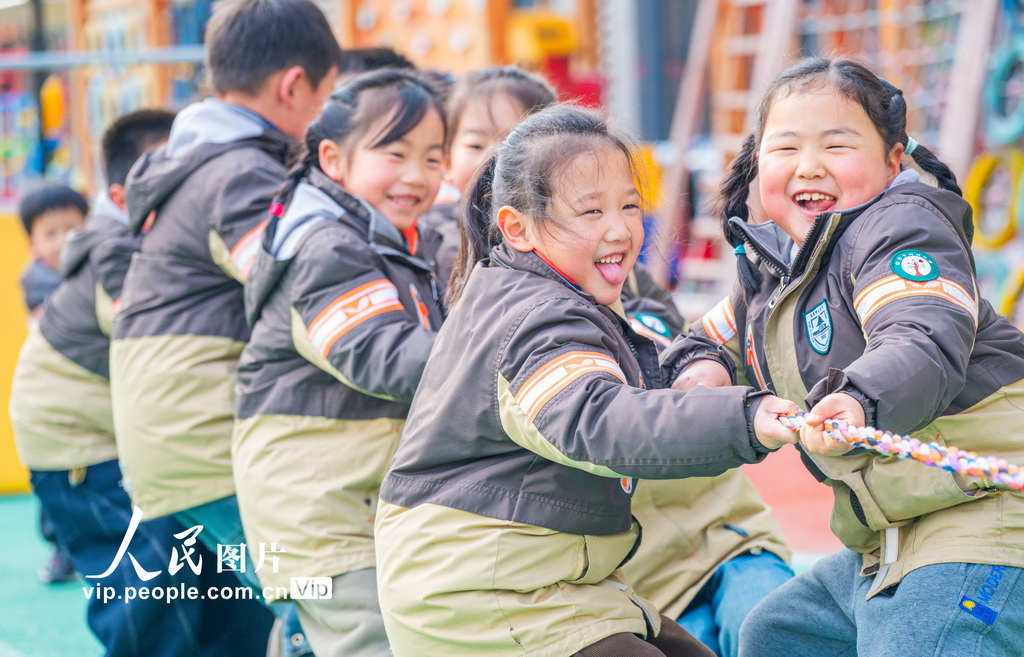 2026年3月6日,江苏省宿迁市宿城区南师附中宿迁分校幼儿园积极开展阳光户外活动,让孩子们在快乐运动中强身健体。徐江海摄(人民图片网)